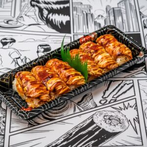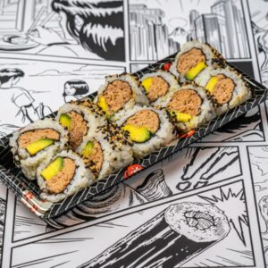 • Cooked tuna inside-out rolls (white rice)