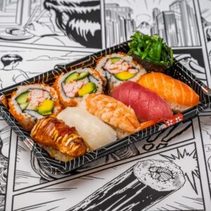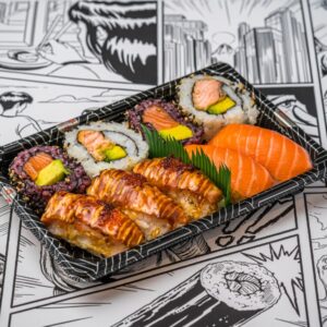 • Salmon sushi & sashimi bento box (white rice)