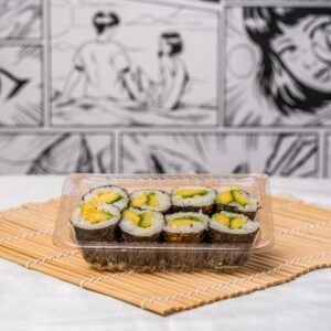 Vegetarian tempura white rice sushi roll (V)