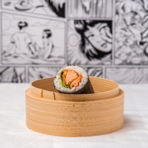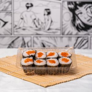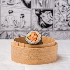 Salmon cucumber white rice sushi roll